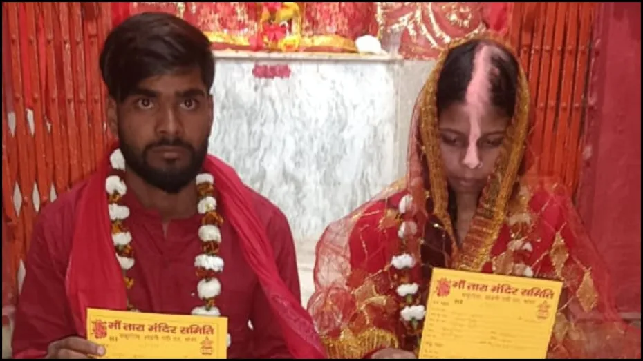 बिहार के बांका में भगवत कथा के दौरान एक प्रेमी अपनी प्रेमिका से मिलने पहुंचा था। इस बारे में गांव के लोगों को पता चला तो उन्होंने मंदिर में लड़का-लड़की की शादी करा दी। इस शादी की तस्वीरें सोशल मीडिया में तेजी से वायरल हो रही हैं। बताया जा रहा है कि सोशल मीडिया प्लेटफॉर्म इंस्ट्राग्राम के जरिए लड़का-लड़की बात करते थे। इसके बाद भागवत कथा में दोनों मिलने पहुंचे और ग्रामीणों ने मंदिर में दोनों की शादी करा दी।