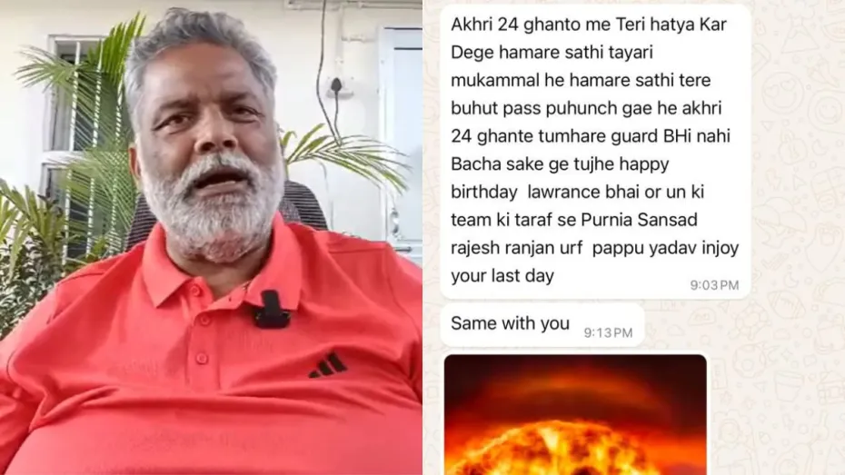 पूर्णिया: बिहार के पूर्णिया से सांसद पप्पू यादव को एक बार फिर जान से मारने की धमकी मिली है। इस बार धमकी देने वाले ने पप्पू को 24 घंटे का समय दिया है और कहा है कि 24 घंटे के अंदर तुम्हें मार देंगे। ये धमकी व्हाट्सऐप के जरिए दी गई है, जिसमें एक बड़ा ब्लास्ट दिखाया गया है और 24 घंटे का समय दिया गया है। धमकी भेजने वाले ने गैंगेस्टर लॉरेंस बिश्नोई के नाम से ये धमकी दी है।