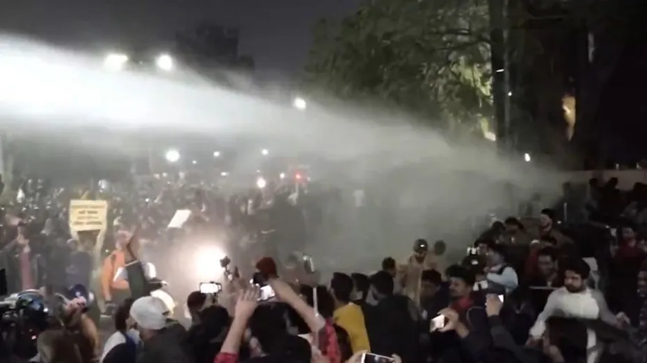 छात्रों पर वाटर कैनन का इस्तेमाल
