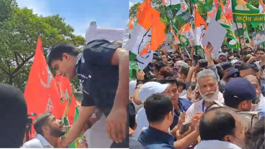बुधवार को पूरे बिहार में वोटर लिस्ट की जांच के खिलाफ प्रदर्शन हुए। इस विरोध प्रदर्शन में राहुल गांधी सहित विपक्षी महागठबंधन के शीर्ष नेता राज्य की राजधानी में एकत्र हुए। राहुल गांधी के साथ राष्ट्रीय जनता दल (राजद) नेता तेजस्वी यादव के अलावा भारतीय कम्युनिस्ट पार्टी (भाकपा) के महासचिव डी राजा, मार्क्सवादी कम्युनिस्ट पार्टी (माकपा) के महासचिव एम ए बेबी और भारतीय कम्युनिस्ट पार्टी (मार्क्सवादी-लेनिनवादी) लिबरेशन के महासचिव दीपांकर भट्टाचार्य भी शामिल हुए। इसी दौरान कन्हैया कुमार और पप्पू यादव को मंच पर चढ़ने से रोक दिया गया।