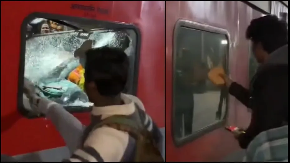 ट्रेन के शीशे तोड़ने का जो वीडियो सामने आया है, उसमें सरकारी संपत्ति को नुकसान पहुंचाने वाले लोगों के चेहरे साफ नजर आ रहे हैं। हालांकि, पुलिस ने इस बारे में अब तक किसी भी तरह की कार्रवाई की सूचना नहीं दी है। वीडियो में एक युवक ऐसा भी नजर आ रहा है, जो लात मारकर हर शीशे को तोड़ने की कोशिश कर रहा है। एक शीशा टूटने पर दूसरा शीशा तोड़ने में जुट जाता है। शीशा टूटते ही पीछे खड़े यात्री ट्रेन के अंदर घुसने लगते हैं, लेकिन यह युवक दूसरा शीशा तोड़ने में लग जाता है।