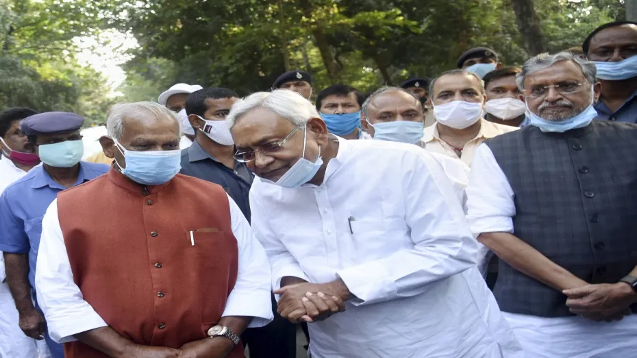 बिहार विधानसभा चुनाव में कांटे की टक्कर में जीत दर्ज करने वाले एनडीए के विधायक दल की बैठक नीतीश कुमार के आवास पर चल रही है। इस बैठक में देश के रक्षा मंत्री और भाजपा के वरिष्ठ नेता राजनाथ सिंह भी बतौर पर्यवेक्षक पहुंचे गए हैं इस बैठक में अगले मुख्यमंत्री के रूप में नीतीश कुमार के नाम पर मुहर लगनी तय मानी जा रही है। हालांकि माना जा रहा है कि उप मुख्यमंत्री के पद पर भाजपा कोई नया चेहरा पेश कर सकती है। उप मुख्यमंत्री रहे सुशील मोदी को पार्टी ने दिल्ली बुलाया गया है।