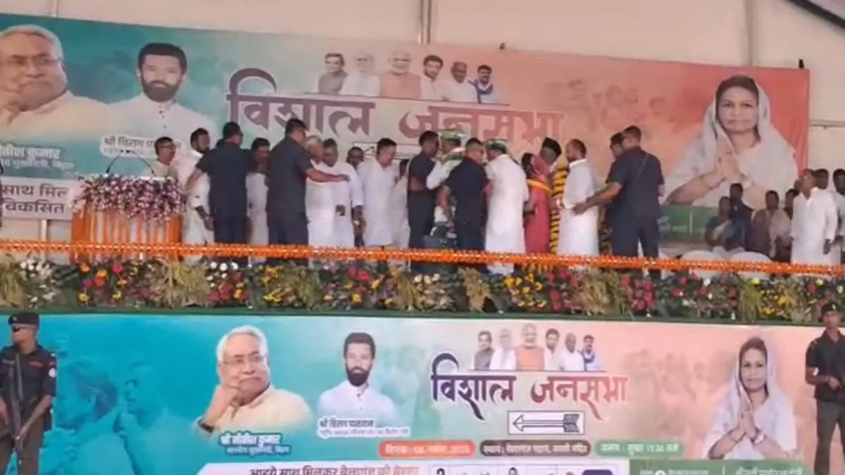 गया के बेलागंज पड़ाव स्थल पर शनिवार बिहार सीएम नीतीश कुमार ने अपने जदयू प्रत्याशी मनोरमा देवी के पक्ष में चुनावी जनसभा को संबोधित किया। इस मौके पर मंत्री विजय चौधरी,अशोक चौधरी भी शामिल हुए। चुनावी जनसभा में सीएम नीतीश कुमार के स्वागत में माला पहनाने के लिए समर्थक और कार्यकर्ता की भीड़ मंच पर बड़ी सी माला लिए पहुंच गए। ज्यादा भीड़ होने के कारण मंच का एक हिस्सा अचानक धंस गया, इसकी आवाज भी आई। आवाज सुन सुरक्षाकर्मियों ने कार्यकर्ताओं और समर्थकों को मंच से नीचे उतार दिया। सीएम नीतीश को भी मंच से सुरक्षित नीचे उतारा गया।