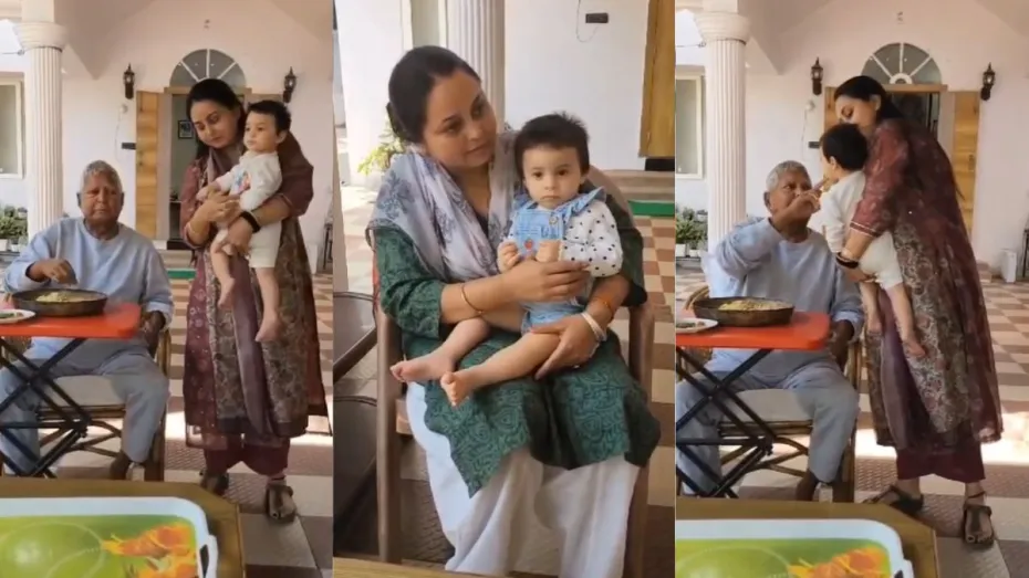 राजद के नेता तेजस्वी यादव की बेटी कात्यायनी का एक वीडियो सामने आया है। वीडियो में वह अपनी बुआ रोहिणी आचार्य की गोद में दिख रही हैं। उनके साथ लालू प्रसाद यादव भी मौजूद हैं, जो कात्यायनी को खाना खिलाते दिख रहे हैं।