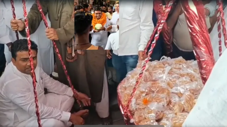 राष्ट्रीय जनता दल से निकाले गए नेता संजय राय फूलगोभी लेकर वोट मांग रहे हैं। वहीं, समर्थकों ने उन्हें जलेबी से तौला। इस घटना का वीडियो भी सामने आया है। राष्ट्रीय जनता दल ने बिहार विधानसभा चुनाव के बीच अनुशासनहीनता और पार्टी विरोधी गतिविधियों के चलते 27 नेताओं को 6 साल के लिए पार्टी से निकाल दिया है। संजय राय भी इनमें शामिल हैं। पार्टी से निकाले जाने वाले संजय निर्दलीय चुनाव लड़ रहे हैं। उन्हें फूलगोभी चुनाव चिह्न मिला है और वह इसे लेकर जनता के बीच जा रहे हैं।