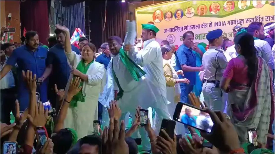 लोकसभा चुनाव 2024 के चौथे चरण की आज वोटिंग हो रही है। इसी बीच बिहार से एक अजब घटना सामने आ रही है। यहां लालू के बड़े बेटे तेज प्रताप यादव ने अपने ही एक राजद नेता पर गुस्सा कर गए और भरे मंच से सबके सामने धक्का दे दिया है, वो नीचे गिर गया। इसका एक वीडियो भी सामने आया है।