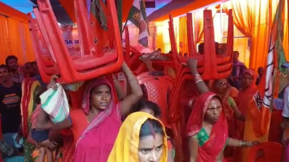 बिहार के फारबिसगंज स्थित दीनदयाल चौक पर रविवार को एनडीए के प्रधान चुनाव कार्यालय के उद्घाटन के दौरान बड़ा हंगामा देखने को मिला। कार्यालय का उद्घाटन समारोह शुरू होने से पहले ही महिलाओं और कार्यकर्ताओं का सब्र टूट गया, जिसके बाद अफरा-तफरी मच गई और कुछ महिलाएं कुर्सियां उठाकर ले गईं।