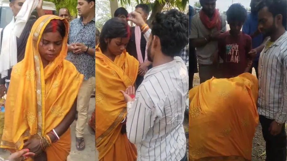 सोमवार की रात जब अमिताभ अपनी प्रेमिका से मिलने उसके घर के पास पहुंचा था, तभी गांव के लोगों ने दोनों को पकड़ लिया। इसके बाद मारपीट करते हुए प्रेमी अमिताभ को उसी के गमछे से बांध दिया। मंगलवार की सुबह गांव और आस पास के लोगों को बुलाया गया। गांव वालों ने जब दोनों से पूछताछ की तो पता चला कि शादी के पहले से दोनों के बीच प्रेम प्रसंग था और दोनों शादी करने के लिए तैयार हैं। इसके बाद लड़की की सास और पति से भी बात की गई तो दोनों ने शादी की सहमति दी। इसके बाद दोनों की सड़क किनारे ही शादी करा दी गई। इसके बाद प्रेमी से पति बना अमिताभ अपनी नई पत्नी और बच्ची को साथ लेकर चला गया। (इनपुट- संतोष श्रीवास्तव)