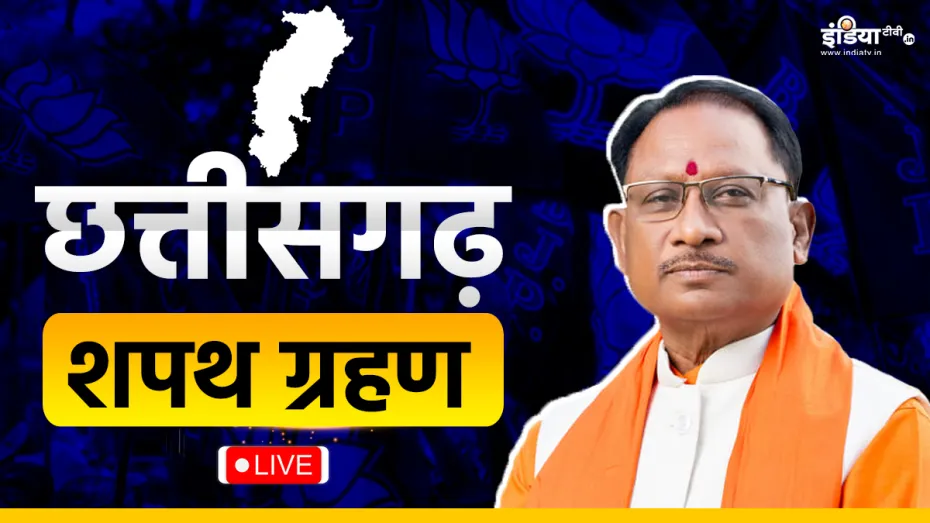 CG CM Oath Taking Ceremony Live: छत्तसीगढ़ में आज विष्णुदेव साय ने मुख्यमंत्री पद की शपथ ली। इस समारोह में पीएम मोदी समेत तमाम दिग्गज मौजूद रहे।