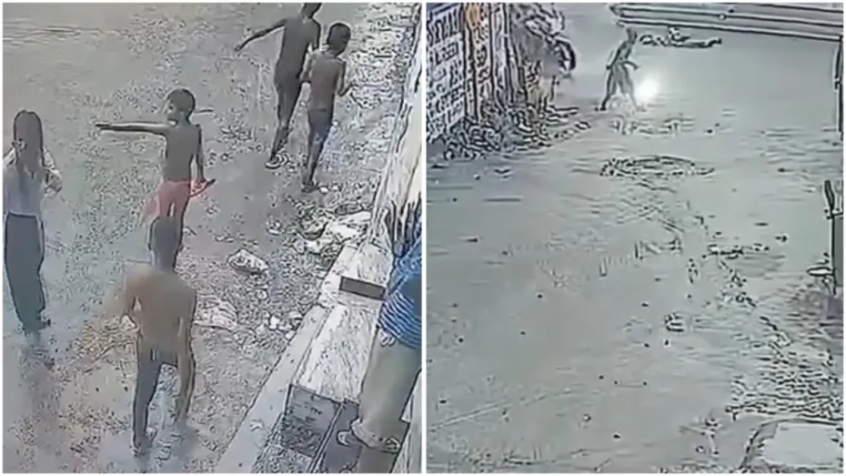 सीवर के पास खेलता दिखा बच्चा