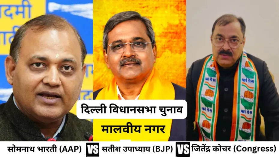 Delhi Assembly Elections 2025: दिल्ली विधानसभा चुनावों के लिए 5 फरवरी को मतदान होना है, जिसके नतीजे 8 फरवरी को आएंगे। ऐसे में सभी पार्टियों ने अपनी तैयारी को तेज कर दिया है। दिल्ली की 70 विधानसभा सीटों पर हो रहे चुनावों में मालवीय नगर एक अहम सीट है, जहां आम आदमी पार्टी, बीजेपी और कांग्रेस के बीच कांटे की टक्कर है। यहां आप से सोमनाथ भारती, बीजेपी से सतीश उपाध्याय और कांग्रेस से जितेंद्र कुमार कोचर उम्मीदवार हैं।