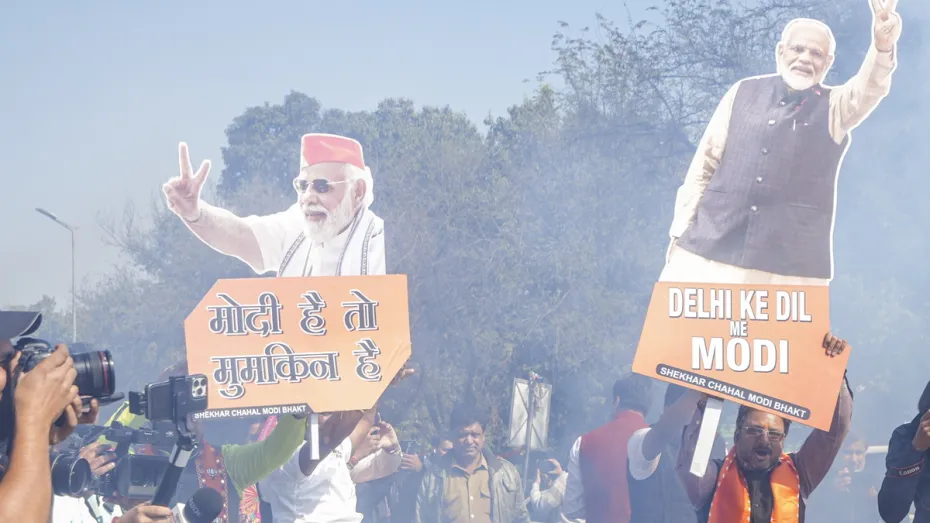 दिल्ली में भाजपा मुख्यालय में कार्यकर्ताओं ने पटाखे फोड़कर जश्न मनाया। भाजपा दिल्ली की कुल 70 सीटों में से 48 सीटें जीतकर 27 साल बाद राष्ट्रीय राजधानी में सरकार बनाएगी।