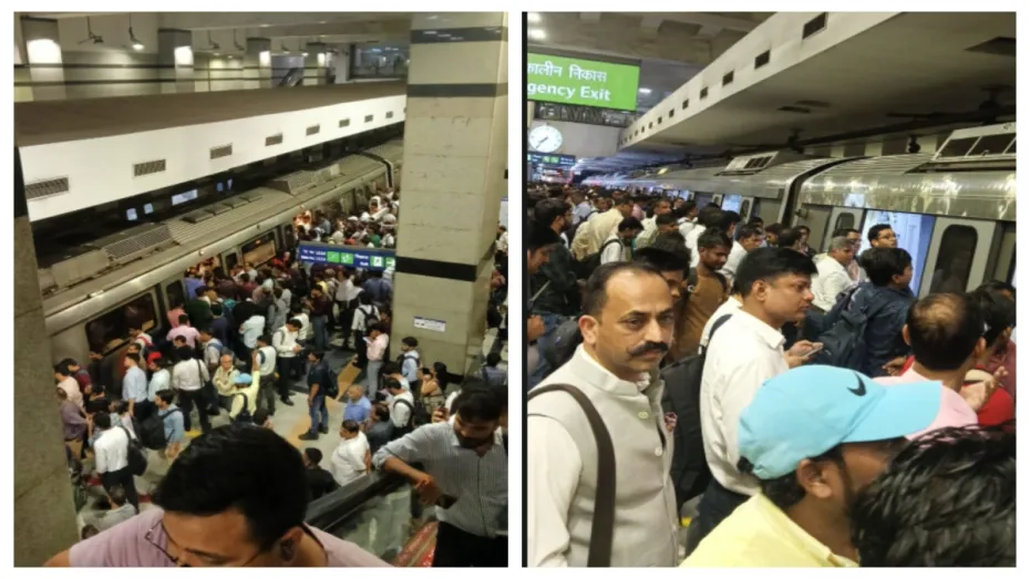 दिल्ली में हो रही भारी बारिश की वजह से द्वारका से नोएडा और वैशाली आने वाली मेट्रो में तकनीकी खराबी आने की वजह से ब्लू लाइन की मेट्रो बाराखंबा में लगभग 50 मिनट तक रूकी रही। मेट्रो में आई तकनीकी खराबी की वजह से मुसाफिरों को भारी परेशानी का सामना करना पड़ा। बता दें कि ब्लू लाइन की मेट्रो से प्रतिदिन बड़ी संख्या में यात्रा करते हैं। सोमवार की शाम 7:30 बजे से 8:20 बजे तक ब्लू लाइन पर बाराखंभा और इंद्रप्रस्थ स्टेशनों के बीच ट्रेन सेवाएं अस्थायी रूप से बाधित रहीं। जानकारी के मुताबिक ओएचई पर एक छोटी पेड़ की टहनी गिर गई।