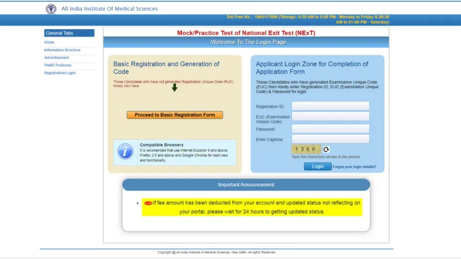अखिल भारतीय आयुर्विज्ञान संस्थान (AIIMS) नई दिल्ली ने NExT मॉक टेस्ट की घोषणा कर दी है। वह अब नेशनल मेडिकल काउंसिल की ओर से नेशनल एग्जिट टेस्ट (NExT) के लिए मॉक या एक्सर्साइज आयोजिक करेगा। MBBS के फाइनल ईयर के स्टूडेंट इसमें भाग ले सकते हैं। इसके लिए उन्हें आधिकारिक वेबसाइट Next.aiimsexams.ac.in पर आवेदन करना होगा। जानकारी दे दें कि इसकी रजिस्ट्रेशन प्रक्रिया 28 जून को शुरू हुई और 10 जुलाई को शाम 5 बजे समाप्त होगी।
