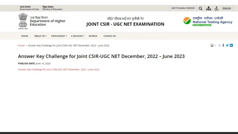 फिर होम पेज पर उपलब्ध सीएसआईआर यूजीसी नेट 2022 आंसर-की चैलेंज लिंक पर क्लिक करें।