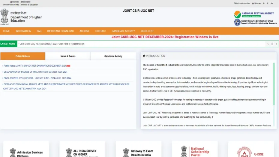 CSIR UGC NET के लिए रजिस्ट्रेशन करने की सोच रहे हैं तो ये अंतिम मौका है। एनटीए यानी नेशनल टेस्टिंग एजेंसी काउंसलि ऑफ साइंटेफिक एंड इंडस्ट्रियल रिसर्च नेशनल एलिजिबिलिटी टेस्ट (CSIR NET) 2024 के दिसंबर सेशन के लिए आज यानी 30 दिसंबर को रजिस्ट्रेशन बंद कर देगा। ऐसे में जो उम्मीदवार अभी तक किन्हीं कारणवश CSIR NET 2024 दिसंबर में रजिस्ट्रेशन नहीं कर पाएं हैं वे आधिकारिक वेबसाइट https://csirnet.nta.ac.in./ पर जाकर जल्दी आवेदन कर सकते हैं। वहीं, दिसंबर सेशन की परीक्षा के लिए आवेदन शुल्क का भुगतान करने की अंतिम तारीख 31 दिसंबर 2024 है।
