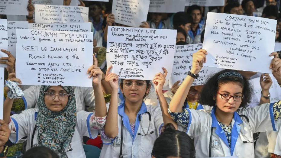 NEET को लेकर छात्र अब सड़कों पर उतर आए हैं, आज दिल्ली के जंतर-मंतर पर छात्रों ने बड़ी संख्या में विरोध प्रदर्शन किया। इस प्रदर्शन में छात्रों के साथ उनके माता-पिता और अभिभावक भी शामिल थे। छात्रों की मांग है कि नीट एग्जाम को रद्द किया जाए और दोबारा एग्जाम कराया जाए। इसे लेकर 20000 छात्रों ने देश भर की अदालतों में याचिकाएं दाखिल की हैं। वहीं, NEET काउंसलिंग रोकने को लेकर सुप्रीम कोर्ट में याचिका दायर की गई है, जिस पर आज कोर्ट सुनवाई कर सकता है। इसके अलावा, ग्रेस मार्क्स को लेकर भी दिल्ली हाईकोर्ट में याचिका डाली गई है। इस पर आज कोर्ट सुनवाई कर सकता है।