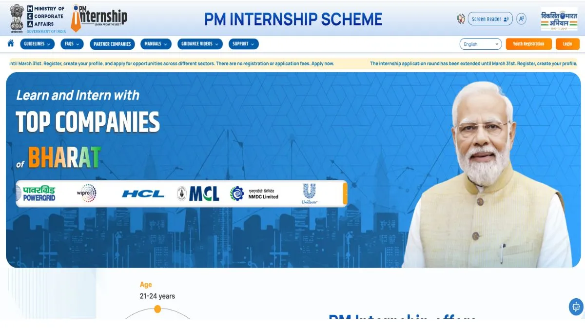 सबसे पहले पीएम इंटर्नशिप की आधिकारिक वेबसाइट pminternship.mca.gov.in. पर जाएं।
