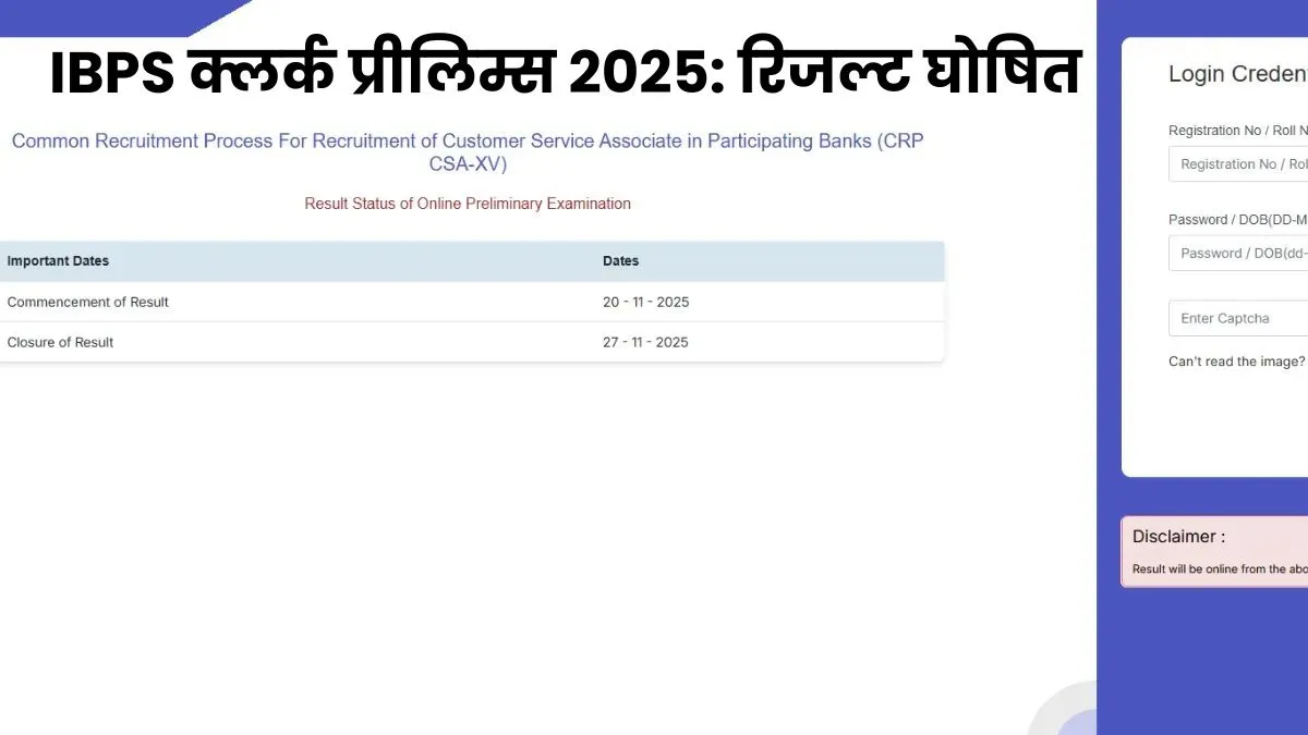 IBPS Clerk Prelims Result 2025 Online: उत्तीर्ण उम्मीदवार जाएंगे आगे