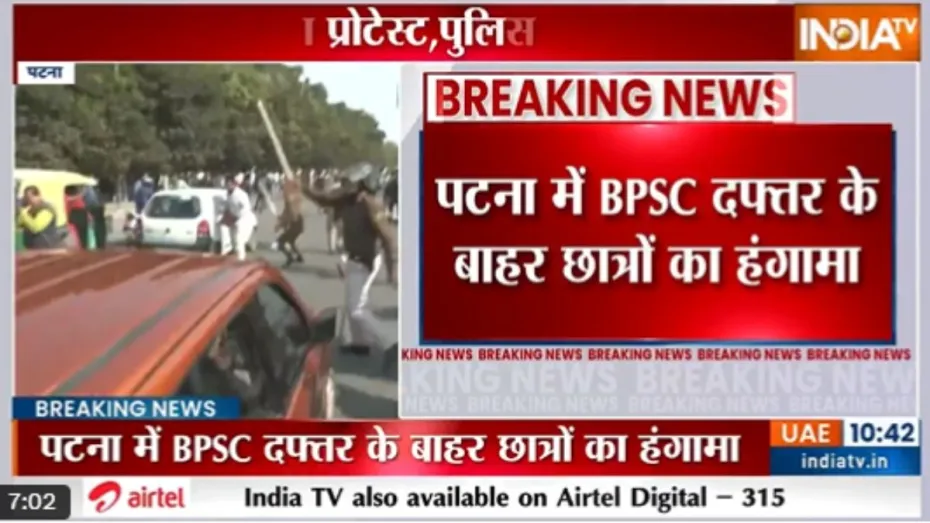 बता दें कि 13 दिसंबर को होने वाली 70वीं बीपीएससी की प्रीलिम्स परीक्षा के नियमों में बदलाव को लेकर पटना में सैंकड़ों की संख्या में उम्मीदवार प्रदर्शन कर रहे हैं। इस दौरान छात्र उग्र प्रदर्शन कर रहे हैं और नियमों में बदलाव के खिलाफ जमकर नारेबाजी कर रहे हैं। साथ ही राज्य सरकार से इस पर दोबारा विचार करने की मांग भी कर रहे हैं। पुलिस ने उम्मीदवारों को बीपीएससी ऑफिसर से जाने को कहा, लेकिन वे नहीं माने। उसके बाद पुलिस ने लाठीचार्ज किया। युवाओं के पुलिस ने सड़कों पर दौड़ा-दौड़ा कर पीटा है।