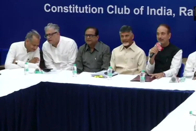 दिल्ली के कॉन्स्टिट्यूशन क्लब में विपक्षी दलों के नेताओं की बैठक।