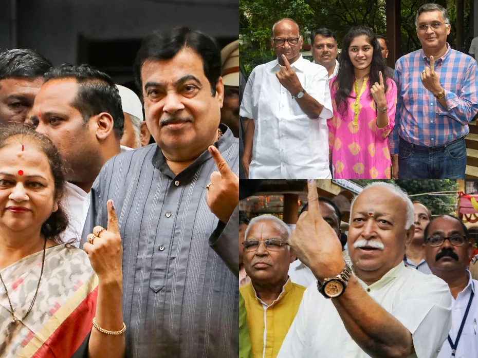 मुंबई। महाराष्ट्र में विधानसभा की 288 सीटों के लिये सोमवार को हुए चुनाव के दौरान राष्ट्रीय स्वयंसेवक संघ प्रमुख मोहन भागवत, केंद्रीय मंत्री नितिन गडकरी और राकांपा अध्यक्ष शरद पवार समेत कई हस्तियों ने अपने मताधिकार का इस्तेमाल किया। मुख्यमंत्री देवेंद्र फड़णवीस के नेतृत्व वाला भाजपा-शिवसेना गठबंधन राज्य में दूसरी बार सत्ता में वापसी की कोशिश में है।