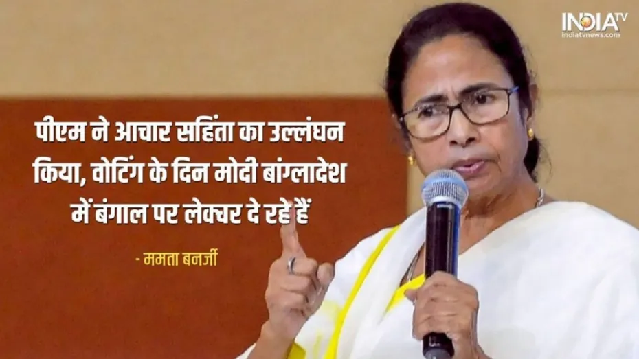 खड़गपुर में पश्चिम बंगाल की मुख्यमंत्री ममता बनर्जी ने कहा कि 'यहां चुनाव चल रहे हैं और वे (प्रधानमंत्री मोदी) बांग्लादेश जाते हैं और बंगाल पर व्याख्यान देते हैं। यह चुनाव आचार संहिता का पूरी तरह उल्लंघन है।'