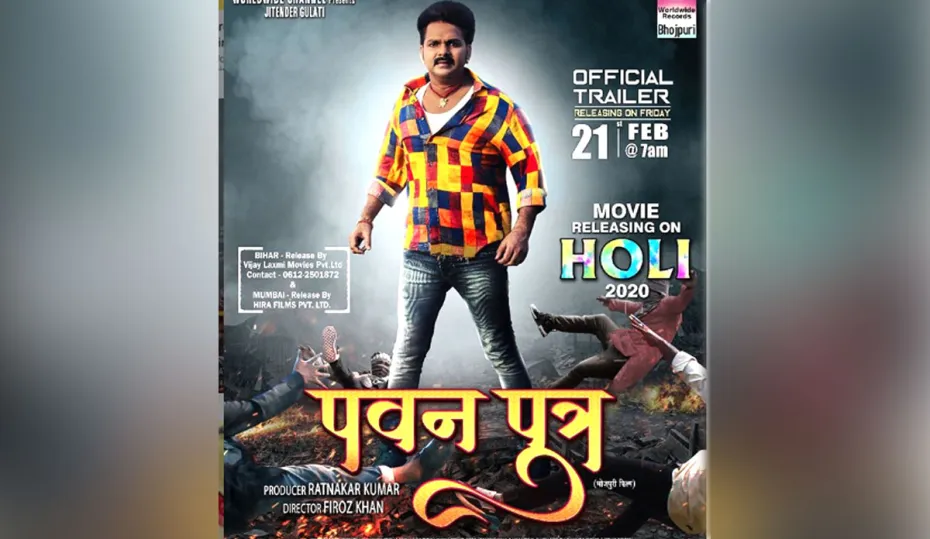 पटना: रंगों के त्योहार होली के मौके पर भोजपुरी फिल्म स्टार पवन सिंह की फिल्म 'पवन पुत्र' पूरे भारत मे रिलीज होगी। इस फिल्म का ट्रेलर पहले ही वर्ल्डवाइड रिकॉर्ड्स भोजपुरी के ऑफिसियल यूट्यूब चैनल से रिलीज किया जा चुका है, जिसे दर्शकों ने खूब सराहा है। अब यह फिल्म रिलीज को तैयार है, जिसके निर्माता रत्नाकर कुमार और निर्देशक फिरोज खान हैं।