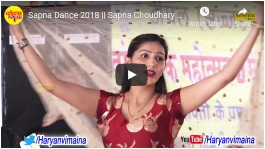नई दिल्ली: सपना चौधरी के डांस वीडियो अक्सर सोशल मीडिया पर वायरल होते रहते हैं, स्टेज शो तो कोरोना वयरस की वजह से बंद है लेकिन यूट्यूब पर रिलीज हुए उनके गाने फैन्स खूब देखते हैं। इस बीच सपना का एक और गाना यूट्यूब पर धमाल मचा रहा है। गाने को सोनोटेक यूट्यूब चैनल पर रिलीज किया गया है। गाने में मैरून सूट में कंगना सिर पर दुपट्टा ओढ़कर डांस करती दिख रही हैं। गाने में सपना को देखने खूब सारे उनके फैन्स पहुंचे हैं जो सपना के साथ ठुमके लगाते दिख रहे हैं। देखिए गाना-