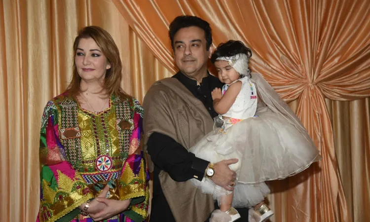 मुंबई: ईशा अंबानी का रिसेप्शन आज मुंबई में मुकेश अंबानी के जियो गार्डन में हो रहा है। इस रिसेप्शन में कई सितारे पहुंच रहे हैं। अदनान सामी भी अपनी बेटी और पत्नी के साथ इस रिसेप्शन में पहुंचे हुए हैं। अदनान की बेटी सफेद रंग की फ्रॉक में बेहद खूबसूरत लग रही है।