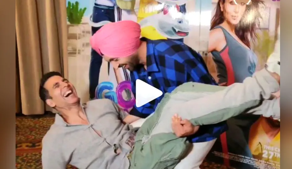 दरअसल, फिल्म के प्रमोशन के दौरान अक्षय कुमार और दिलजीत दोसांझ पैपाराजी के सामने पोज दे रहे थे। तभी अक्षय ने न्यूबॉर्न बेबी की तरह एक्ट करने की कोशिश की। वो दिलजीत की गोद में कूद गए, लेकिन अक्षय का भार ज्यादा होने की वजह से दिलजीत उन्हें संभाल नहीं पाए और दोनों गिर पड़े। ये फनी हरकत करने के बाद दोनों खुद ही हंसने लग गए।