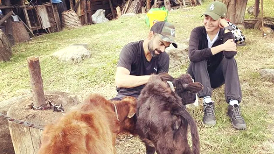 भारतीय क्रिकेट टीम के कप्तान विराट कोहली और बॉलीवुड एक्ट्रेस अनुष्का शर्मा इन दिनों भूटान में वेकेशन एन्जॉय कर रहे हैं। अनुष्का ने हाल ही में कुछ फोटोज शेयर की हैं, जिनमें वो पति विराट संग गाय के बछड़ों के साथ खेलती दिखाई दे रही हैं। बता दें कि अनुष्का ने विराट का जन्मदिन भी प्रकृति की गोद में शांतिपूर्वक मनाया।