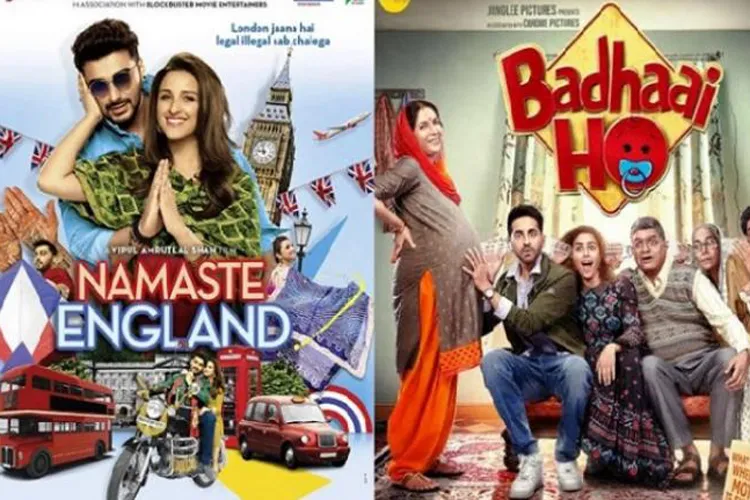 नई दिल्ली: आयुष्मान खुराना-सान्या मल्होत्रा स्टारर 'बधाई हो' और अर्जुन कपूर-परिणीति चोपड़ा स्टारर 'नमस्ते इंग्लैंड' 18 अक्टूबर को रिलीज हो गए हैं। 'बधाई हो' को अमित शर्मा ने और 'नमस्ते इंग्लैंड' को विपुल शाह ने डायरेक्ट किया है। पहले दोनों फिल्में 19 अक्टूबर को रिलीज होने वाली थी, लेकिन दशहरा 18 और 19 दोनों दिन मनाए जाने के कारण दोनों फिल्मों की रिलीज डेट एक दिन पहले कर दी गई।
