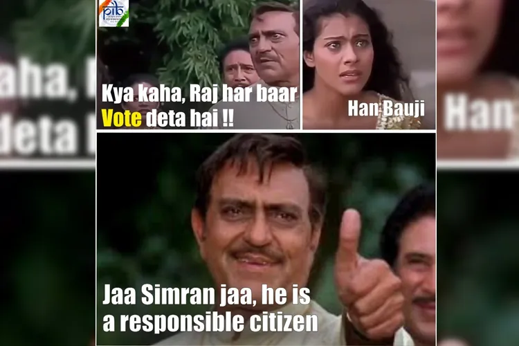 नई दिल्ली: लोकसभा चुनाव 2019 की तैयारी पूरी जोर शोर से हर तरफ चल रही है। जनता को वोट को लेकर जागरुक करने के लिए हर सरकारी संस्था पूरी कोशिश लगा रही है। कुछ ऐसा ही आज 'पीआई बी'' ने अपने ट्वीटर हैंडल के माध्यम से करने की कोशिश की है। पीआई बी यानि 'मीडिया सूचना ब्यूरो' ने वोट को लेकर लोगों को जागरुकता फैलाने के लिए बड़ा मजाकिया तरीका निकाला है। पीआई बी ने ट्वीटर पर फिल्म ''दिलवाले दुल्हनिया ले जाएंगे'' का फेमस डॉयलोग ''जा सिमरन जा' का इस्तेमाल लोगों से वोट मांगने के लिए किया है। साथ ही इस फोटो के कैप्शन में लिखा है कि '' हर चुनाव महत्वपूर्ण होता है, मत देना आपके आपके अधिकार से ज्यादा आपका कार्य है। एक होनहार नागरिक होने के नाते आपको मतदान में मत देकर भाग लेना चाहिए।