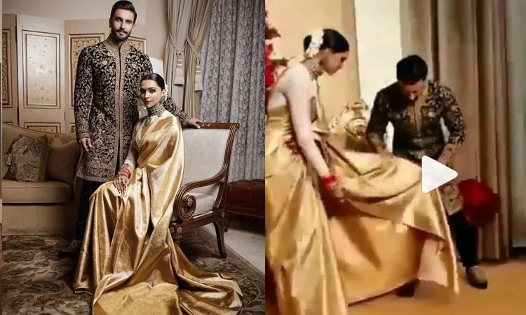 बैंगलुरु: दीपिका पादुकोण और रणवीर सिंह के बैंगलुरू रिसेप्शन की तस्वीरें सामने आ गई हैं। इस बीच एक वीडियो भी वायरल हो रहा है जिसमें मीडिया से मिलने से पहले दीपिका पादुकोण की साड़ी संभालते नजर आ रहे हैं उनके पति रणवीर सिंह। देखिए वीडियो...