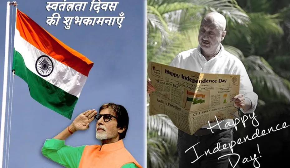 आज पूरा भारत 74वां स्वतंत्रता दिवस मना रहा है। इस खास दिन पर प्रधानमंत्री नरेंद्र मोदी ने ट्वीट कर देशवासियों को शुभकामनाएं दी हैं। आजादी के इस जश्न में बॉलीवुड हस्तियां भी डूब गई हैं। कोरोना काल में अमिताभ बच्चन और अनुपम खेर सहित तमाम बॉलीवुड हस्तियों ने सोशल मीडिया के जरिए फैंस को विश किया है। इस पावन अवसर पर सितारों का अलग अलग अंदाज देखने को मिल रहा है।