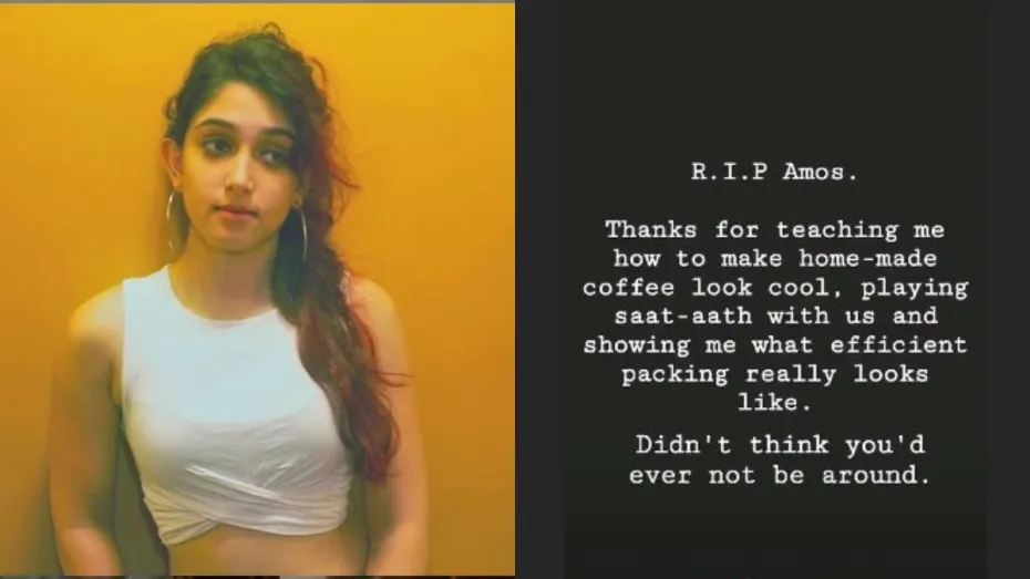 इरा ने अपनी इंस्टाग्राम स्टोरी पर लिखा- आरआईपी अमोस। मुझे घर पर बनी कॉफी को कूल बनाना सिखाने के लिए शुक्रिया, हमारे साथ सात-आठ खेलना और मुझे दिखाना कि कुशल पैकिंग वास्तव में कैसी दिखती है। सोचा नहीं था कि आप कभी भी आसपास नहीं होंगे।