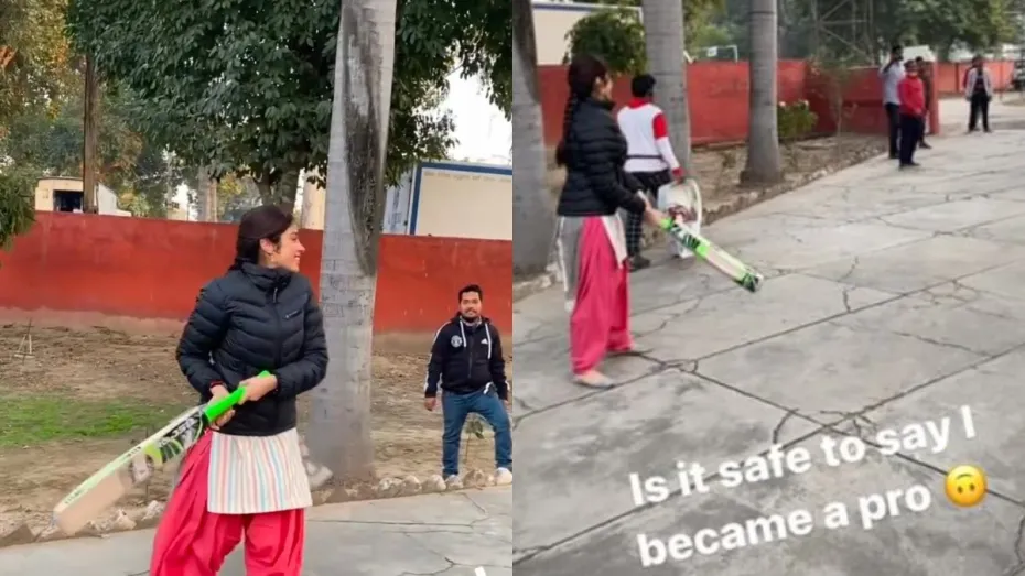 अभिनेत्री जाह्नवी कपूर ने सोशल मीडिया पर क्रिकेट खेलते हुए एक वीडियो पोस्ट किया है। इंस्टाग्राम स्टोरी वीडियो में जाह्नवी अपने बल्ले से एक शॉट मारती हैं। वह पटियाला सलवार कमीज और जैकेट पहनी हुई हैं। जाह्नवी ने वीडियो के साथ लिखा, "क्या यह कहना सुरक्षित है कि मैं इसकी आदी बन गई हूं।"