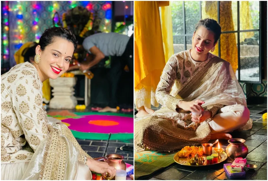 दीपावली का त्योहार हर एक के चेहरे पर चमक ला ही देता है। यही चमक बॉलीवुड अभिनेत्री कंगना रनौत के चेहरे पर भी है। कंगना ने दिवाली पूजन की तैयारियां करते हुए सोशल मीडिया पर कई सारी तस्वीरें शेयर की हैं। इन तस्वीरों में अभिनेत्री मुस्कुराती हुई नजर आ रही हैं।