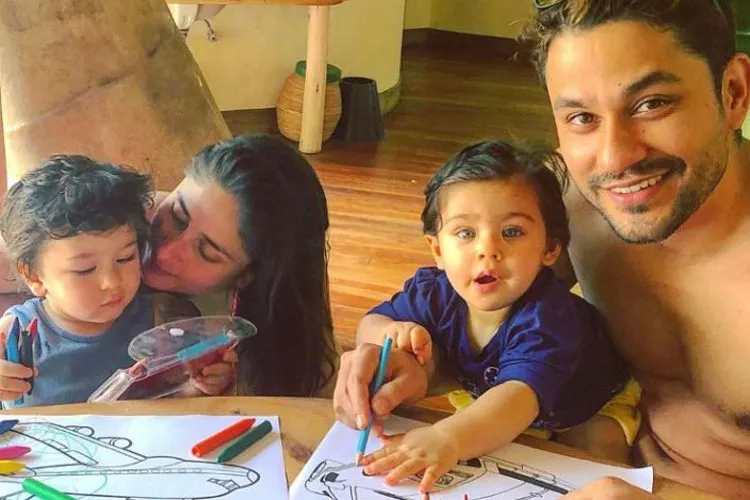 एक तस्वीर में तैमूर और इनाया ड्राइंग करते नजर आ रहे हैं।