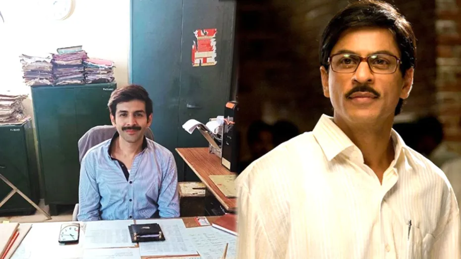 वैसे तो 'पति पत्नी और वो' फिल्म में कार्तिक के लुक की कई तस्वीरें सामने आ चुकी हैं, लेकिन उनका एक और लुक सोशल मीडिया पर खूब वायरल हो रहा है। इस फोटो में कार्तिक एक दफ्तर में बैठे हुए हैं। दुबला-पतला शरीर और बड़ी-बड़ी मूंछों में कार्तिक काफी सिंपल और क्यूट लग रहे हैं। इसे देखकर आपको शाहरुख खान की भी याद आ सकती है, क्योंकि 'रब ने बना दी जोड़ी' में किंग खान का लुक भी काफी हद तक मिलता-जुलता था।