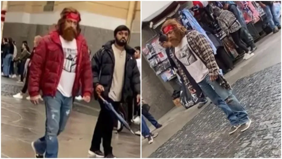 इस फोटो में आप देखा सकते हैं कि सलमान खान ब्राउन कलर के लंबे बाल में नजर आ रहे हैं। इनकी मूछे और दाढ़ी भी बालों की ही तरह ब्राउन रंग की है और काफी लंबी है। वहीं बालों पर सलमान ने रेड बैंड बांधे हुए दिख रहे हैं।