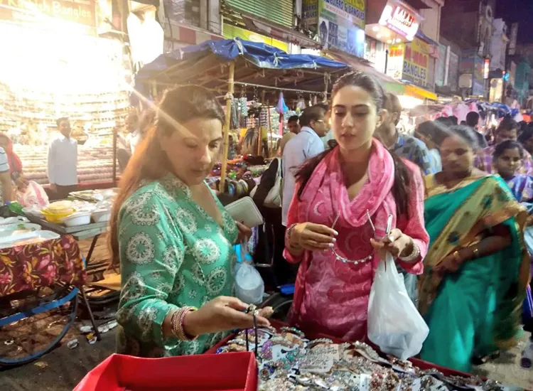 यहां सारा और अमृता एक ठेले पर से खरीददारी कर रही हैं। दरअसल बता दें कि दरअसल यह हैदराबाद का लाड बाजार है। चार मीनार के पास स्थित यह बाजार इतना मशहूर है कि अगर कोई हैदराबाद गया है तो वह इस मार्केट में जरूर जाता है। फिर चाहे वह कोई आम शख्स हो या फिल्मी हस्तियां। सारा और अमृता बहुत सिंपल लुक में दिखाई दे रही हैं।