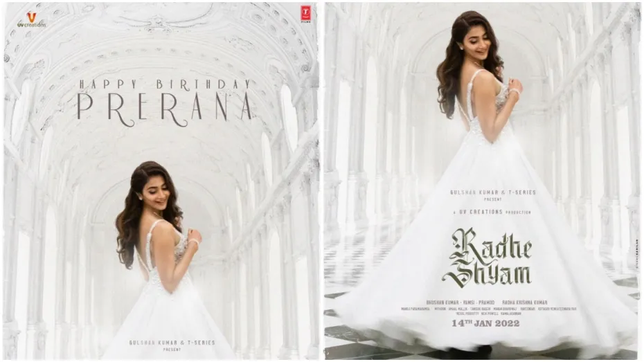 साल 2022 में आने वाली मोस्ट अवेटेड फिल्मों में से एक राधे श्याम है। फिल्म में प्रभास और पूजा हेगड़े नज़र आएंगे। फिल्म की टीम ने आज उनकी प्रेरणा उर्फ पूजा को उनके जन्मदिन पर बधाई देते हुए अभिनेत्री का एक सुंदर सोलो पोस्टर रिलीज़ किया है। आज रिलीज़ किए गए इस नए पोस्टर में, पूजा हेगड़े ने दर्शकों को प्रभावित कर दिया है। एक्ट्रेस को एक सुंदर सफेद गाउन और खुले बालों में देखा जा सकता है। इस पोस्टर में 'हैप्पी बर्थडे प्रेरणा' लिखा है।