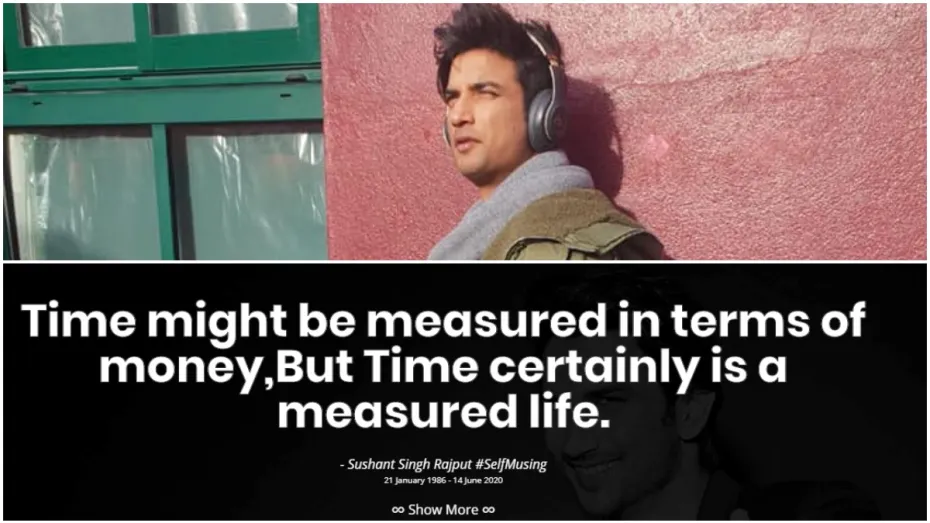 सुशांत सिंह राजपूत की टीम ने फेसबुक पर लिखा, "वह दूर है लेकिन वह अभी भी हमारे साथ जिंदा है। हैशटैग सेल्फम्यूजिंग मोड की शुरुआत। आप जैसे प्रशंसक सुशांत के लिए वास्तविक 'गॉडफादर' थे। जैसा कि उससे वादा किया था, इस स्थान को उनके सभी विचारों, शिक्षाओं, सपनों और इच्छाओं के संग्रह में परिवर्तित किया जाएगा, जो वह लोगों को बताना चाहते थे। हां, हम उन सभी सकारात्मक ऊर्जा का दस्तावेजीकरण कर रहे हैं जो वह अपने पीछे इस दुनिया में छोड़ गए।
