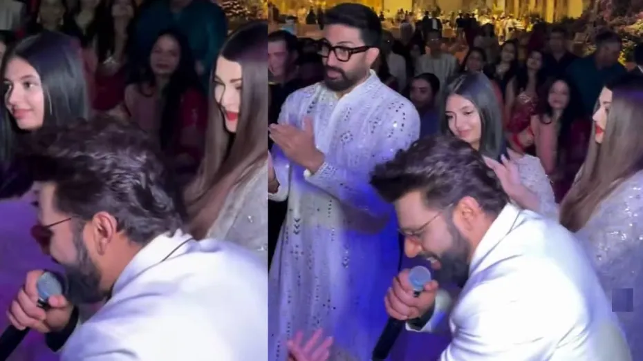 ये शख्स कोई और नहीं बल्कि सिंगर राहुल वैद्य हैं। जी हां, वीडियो में राहुल वैद्य को देखने के बाद कुछ यूजर्स का मूड खराब हो गया है। वायरल हो रहा ये वीडियो फेमस सेलिब्रिटी पैपराजी विरल भयानी ने शेयर किया है। जिसमें राहुल वैद्य को 'कजरा रे, कजरा रे...' गाते देखा जा सकता है। वहीं ऐश्वर्या-अभिषेक और आराध्या अन्य लोगों के साथ थिरक रहे हैं। तीनों को साथ देखकर बच्चन फैमिली के फैंस खुश हैं, लेकिन कुछ लोग राहुल वैद्य को देखकर भड़क उठे।