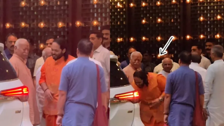 अनंत अंबानी और राधिका मर्चेंट की शादी को सिर्फ 15 दिन ही बचे हैं। जल्द ही दोनों शादी के बंधन में बंध जाएंगे। अनंत अंबानी की शादी की तैयारियों में पूरा अंबानी परिवार लगा हुआ है। नीता अंबानी से लेकर मुकेश अंबानी तक अपने लाडले छोटे बेटे की शादी के लिए खास तैयारियां कर रहे हैं। शादी के कार्ड भी बंटने शुरू हो गए हैं। वीवीआईपी गेस्ट को खुद पर्सनल इनविटेशन देने अंबानी परिवार के सदस्य पहुंच रहे हैं। इन सब चीजों के बीच ही आज मोहन भागवत एंटीलिया हाउस पहुंचे, जहां उनका ग्रैंड वेलकम किया गया। मोहन भागवत की अगुवानी में अनंत अंबानी और मुकेश अंबानी दोनों खड़े नजर आए। इस दौरान कई और लोग भी मौजूद रहे है। मुकेश अंबानी ने बड़ी ही विनम्रता से मोहन भागवत और उनके साथियों ता स्वागत किया।