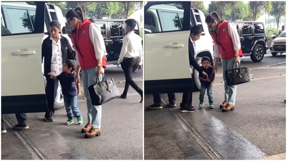 एयरपोर्ट पर जेह को संभालना हुआ मुश्किल