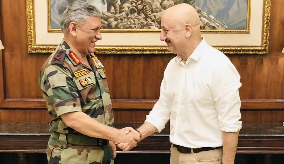 एक्टर अनुपम खेर ने जनरल रावत के साथ की कुछ तस्वीरें ट्विटर पर साझा करते हुए बेहद भावुक कर देने वाला पोस्ट लिखा है - CDS GenBipinRawat, उनकी धर्मपत्नी एवं 11 और फ़ौजी ऑफ़िसर्स के निधन का सुनकर अत्यंत दुख हुआ।#जनरलरावत से मिलने का सौभाग्य कई बार मिला।उनके व्यक्तित्व में ग़ज़ब का दुस्साहस और देश के प्रति अथाह प्रेम था।उनसे हाथ मिलाकर दिल और ज़ुबान से ख़ुदबख़ुद “जय हिन्द” निकलता था!