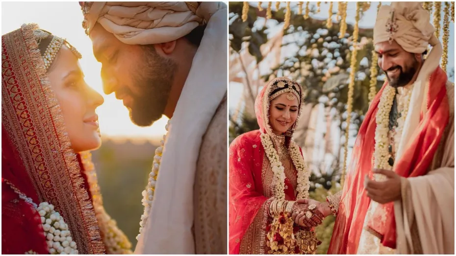 इंस्टाग्राम पर विक्की और कैटरीना ने शादी से स्पष्ट तस्वीरें साझा कीं, जिसमें जयमाला की रस्म और फेरे शामिल हैं। वे समारोह के दौरान एक-दूसरे को प्यार से देखते और हाथ पकड़े नजर आए।